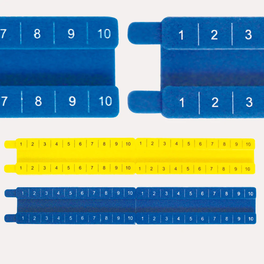 Adecuado para ejercicios comparativos con la regleta, sumas, restas y demás operaciones matemáticas, además de utilizar el concepto de conversiones a través del decímetro, centímetro y metro.